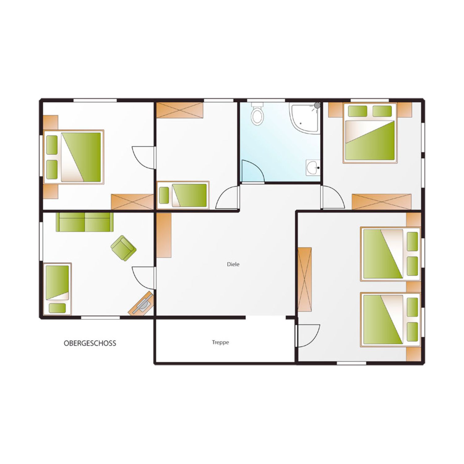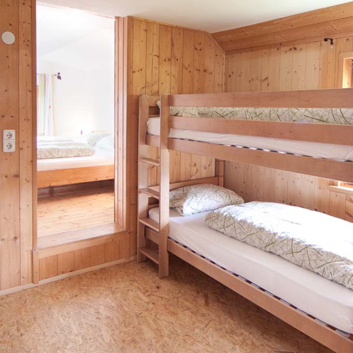 - 4 Schlafräume (2 x DZ, 1 x 4-Bett-Zimmer, 1 x Durchgangszimmer mit Stockbett)